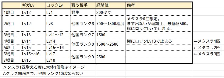 おまけ:ロックちょうLv21、ギガンテスLv16以上で必ずランク10になるか?計算